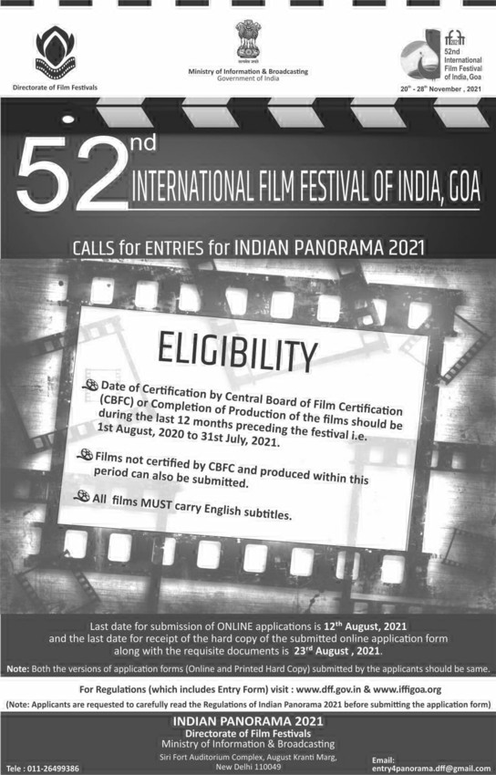 इंडियन पैनोरमा (Indian Panorama), 2021 के लिए IFFI ने कीं प्रविष्टियां आमंत्रित की है।