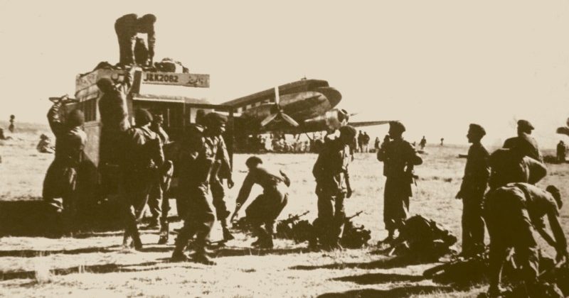The First Fly-in 1947 : Indian troops landing on Srinagar airfield Image courtesy Ministry of Defence