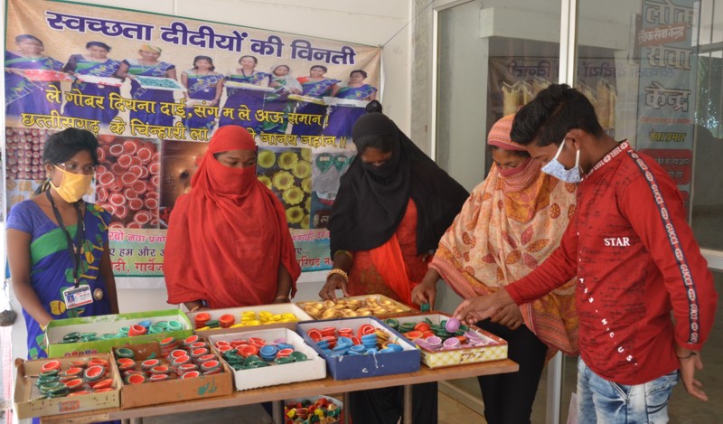 महिमा स्वच्छता समिति नारायणपुर की महिलाओं ने गोबर से बने दीये को विक्रय करने कलेक्टोरेट में स्टॉल लगाया और दीये बेचने की शुरुवात की।