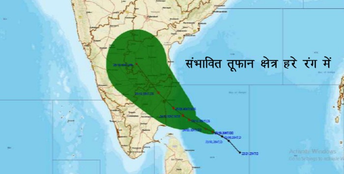 मछुआरों को बंगाल की खाड़ी के दक्षिण.पश्चिम, इसके आसपास के पश्चिम.मध्य और दक्षिण.पूर्व समुद्र, मन्नार की खाड़ी और तमिलनाडु, पुदुचेरी और दक्षिण आंध्र प्रदेश के तटों पर समुद्र में न जाने की सलाह दी गई है।