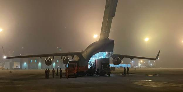 7 फरवरी, 2023 को सुबह 10:00 बजे तक ट्रक पहुंचना शुरू हो गए और शाम 04:00 बजे से भारतीय वायु सेना (आईएएफ) को राहत सामग्री सौंपना शुरू हो गया।