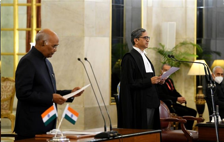 न्यायमूर्ति नूतलपति वेंकट रमणा ने भारत के 48वें प्रधान न्यायाधीश के रूप में शपथ ली।