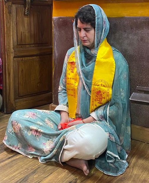 प्रियंका गांधी ने शिमला के हनुमान मंदिर में पूजा-अर्चना की।