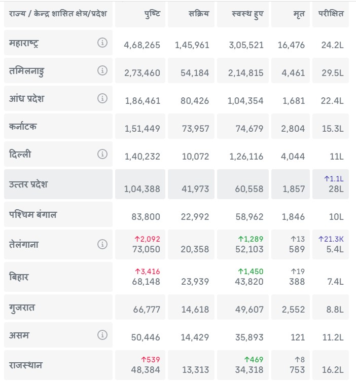 देश के कुछ राज्यों में कोरोना (COVID-19) के मामले इसप्रकार हैं :