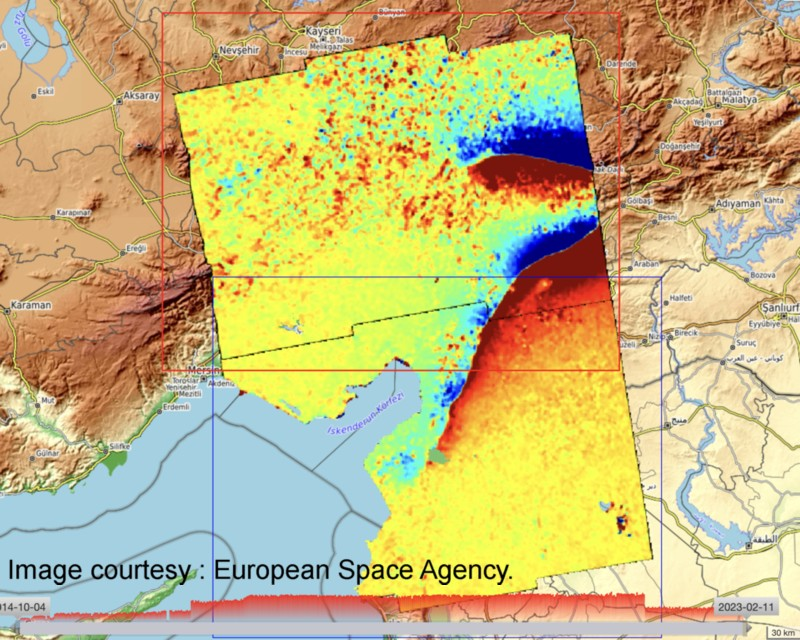 फिलिप बल्ली बताते हैं, “सेंटिनल-1 और सेंटिनल-2 डेटा भू-संकट जोखिम मूल्यांकन विशेषज्ञों को इलाके की गति से संबंधित सटीक जानकारी प्राप्त करने की अनुमति देते हैं।” पूर्वी एनाटोलियन फॉल्ट पर जमीन पर विकृतियों के आयाम को देखते हुए, पूरक पृथ्वी अवलोकन मिशनों का उपयोग करते हुए जियोहैजार्ड एक्सप्लोइटेशन प्लेटफॉर्म पर विभिन्न पृथ्वी अवलोकन प्रसंस्करण श्रृंखलाओं का उपयोग किया गया है।