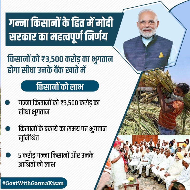 पांच करोड़ गन्ना किसान, उनके परिवारों व इस क्षेत्र से जुड़े पांच लाख कामगारों को लाभान्वित करने वाले इस निर्णय के लिए मैं प्रधानमंत्री नरेन्द्र मोदी जी का हृदयपूर्वक आभार व्यक्त करता हूँ। यह सहायता राशि सीधे किसानों के खातों में जमा होगी।