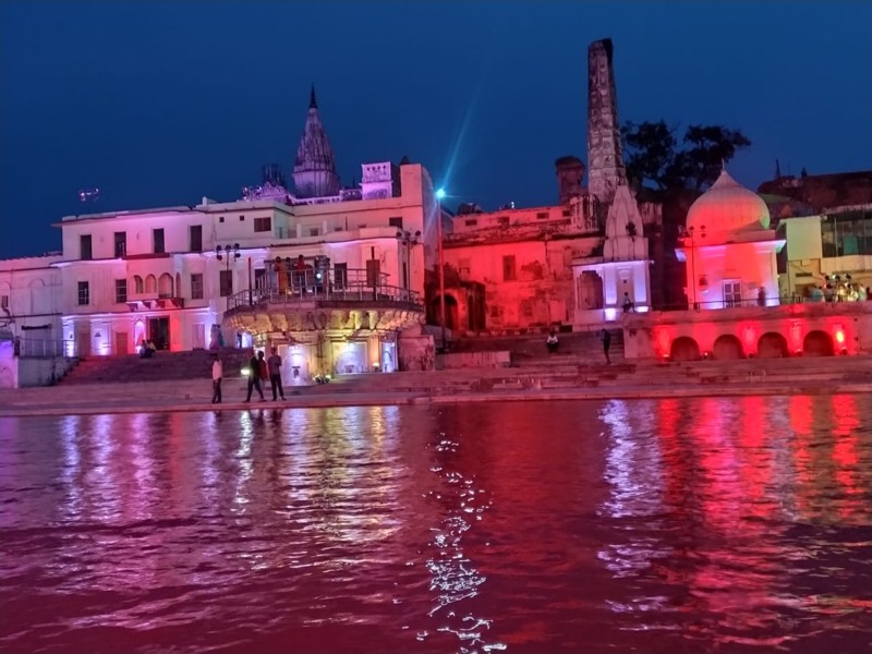 सरयू के किनारे की इमारतों, भवनों, नदी के घाटों और मंदिरों को रोशन कर दिया गया है। रात्रि को अयोध्या रोशनी से जगमगा रही है।
