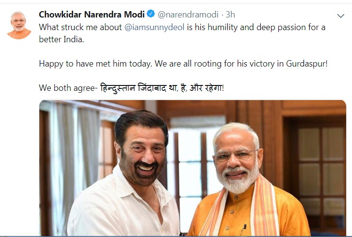 प्रधान मंत्री मोदी ने सनी Sunny Deol की फिल्म ‘गदर- एक प्रेमकथा’ का एक मशहूर डायलॉग भी लिखा‘ हिन्दुस्तान जिंदाबाद था, है और रहेगा’।
