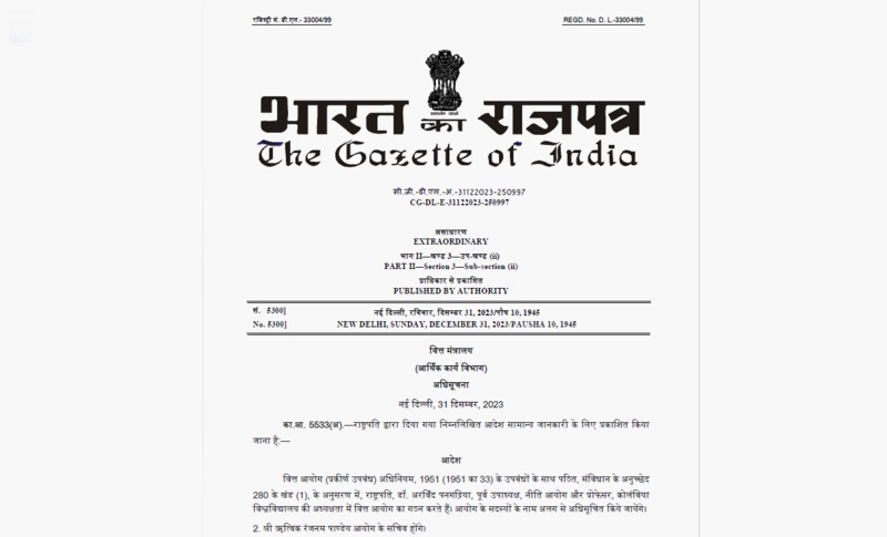 नई दिल्ली, 31 दिसंबर। सरकार ने सोलहवें वित्त आयोग का गठन किया है।