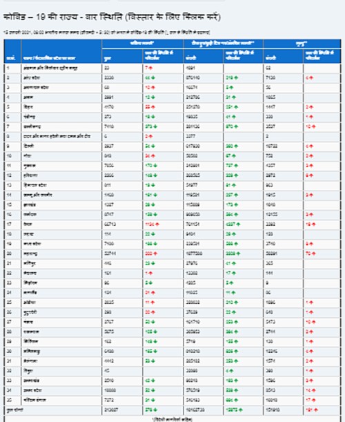 नीचे सूची दी जा रही है जिसमें कोरोना के बारे में राज्यवार स्थिति को आप देख सकते हैं:
