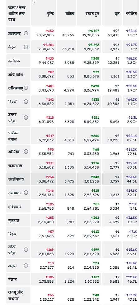 नीचे की की तालिका में कुछ राज्यों के ताजा आंकड़े देखें :