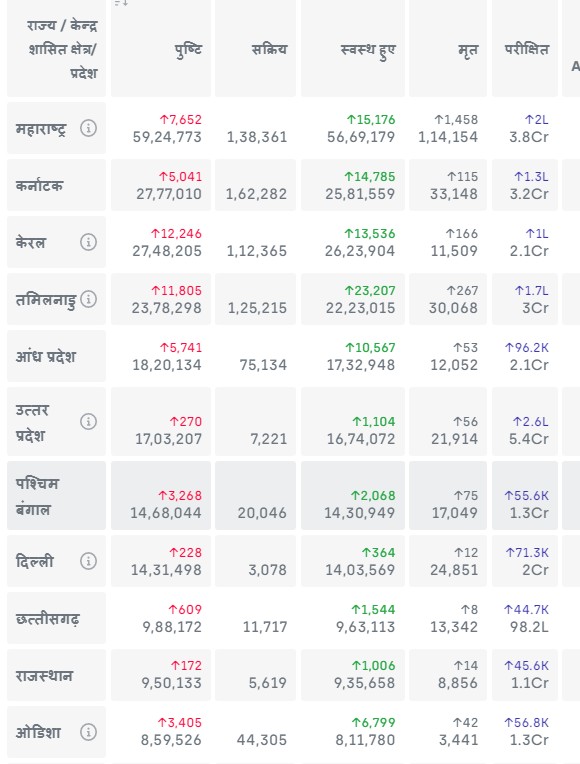 अन्य राज्यों के ताजा आंकड़े देखने के लिए कृपया नीचे दिए गए लिंक पर क्लिक करें: