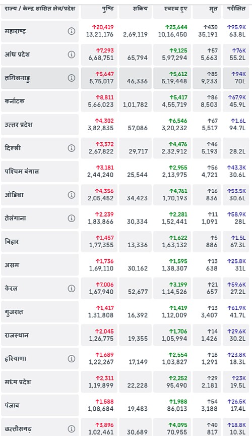 अब देश में एक लाख से अधिक कोरोना संक्रमण वाले राज्यों की संख्या बढ़कर 18 हो गई है। नीचे सूची देखें: