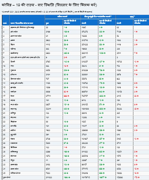 राज्यवार कोरोना के आंकड़े इसप्रकार हैं: