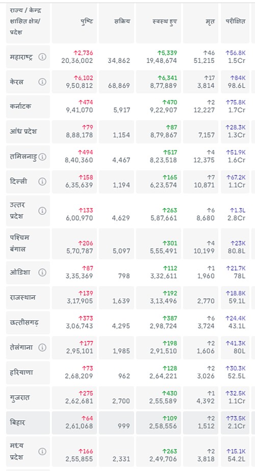 देश कुछ राज्यों में कोरोना (covid-19) की बीते 24 घंटे में क्या स्थिति रही नीचे की तालिका में देख सकते हैं :