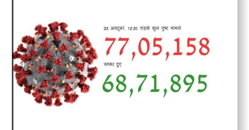 COVID-19 updates: बीते 24 घंटों में कोरोना के 56हज़ार नये मामले सामने आए हैं और इन्हें मिलाकर संक्रमितों की संख्या 77 लाख के पार कर गई है।