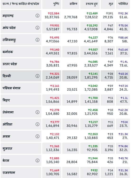 भारत में एक लाख से अधिक कोरोना संक्रमित वाले राज्य हैं :