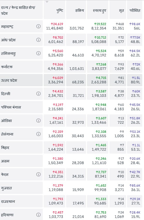 एक लाख से अधिक कोरोना (COVID-19) संक्रमण वाले राज्यों की सूची है :