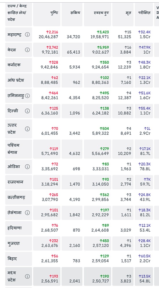 नीचे की तालिका में कुछ राज्यों के ताजा आंकड़े पढ़ें :