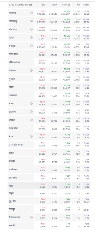 यहाँ कोरोना के बारे में कुछ राज्यों की जानकारी निम्न प्रकार है :