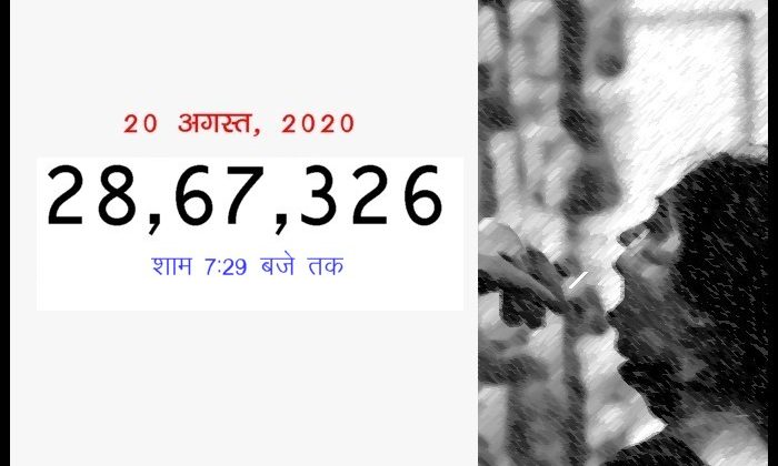 स्वास्थ्य मंत्रालय द्वारा 20 अगस्त,2020 को शाम 07:29 बजे जारी आँकड़ों के अनुसार आंकड़ों के अनुसार भारत में कोरोना (Corona in India) मरीजों की कुल संख्या 28,67,326 हो गई है।