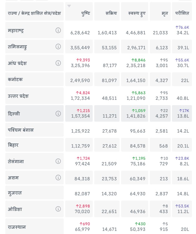 देश में शाम 06ः42 बजे तक एक लाख से अधिक कोरोना 19 संक्रमण वाले राज्यों की सूची :