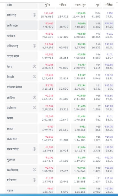 अब देश के उन राज्यों के ताज़ा आँकड़ों को देखें जहाँ कोरोना के एक लाख से अधिक मामले हैं: