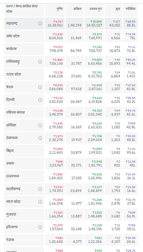 अब जरा देश के एक लाख से अधिक कोरोना संक्रमण वाले राज्यों की सूची देखें :