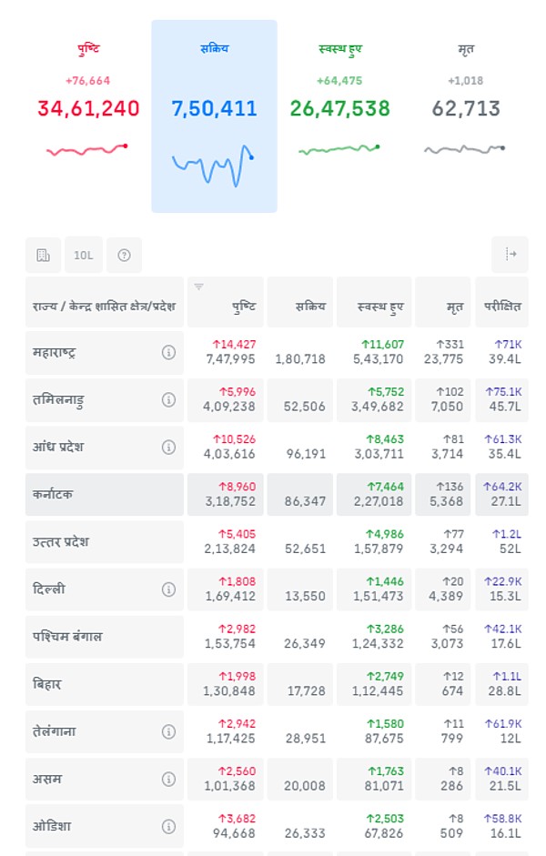 दूसरा स्थान आंध्र प्रदेश का है जहां 10526 लोग कोरोना (COVID-19) से संक्रमित हुए हैं। वहां संक्रमित होने वालों की कुल संख्या 403616 हो गई है।