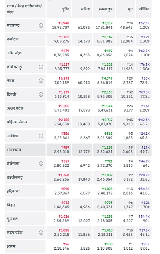 नीचे दो लाख से अधिक कोरोना संक्रमण वाले राज्यों की सूची दी जा रही है जिसमें विस्तार से आंकड़े देखे जा सकते हैं :