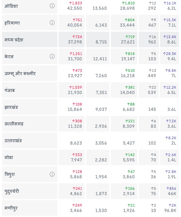 देश के कुछ राज्यों में कोरोना (COVID-19) के मामले इसप्रकार हैं :