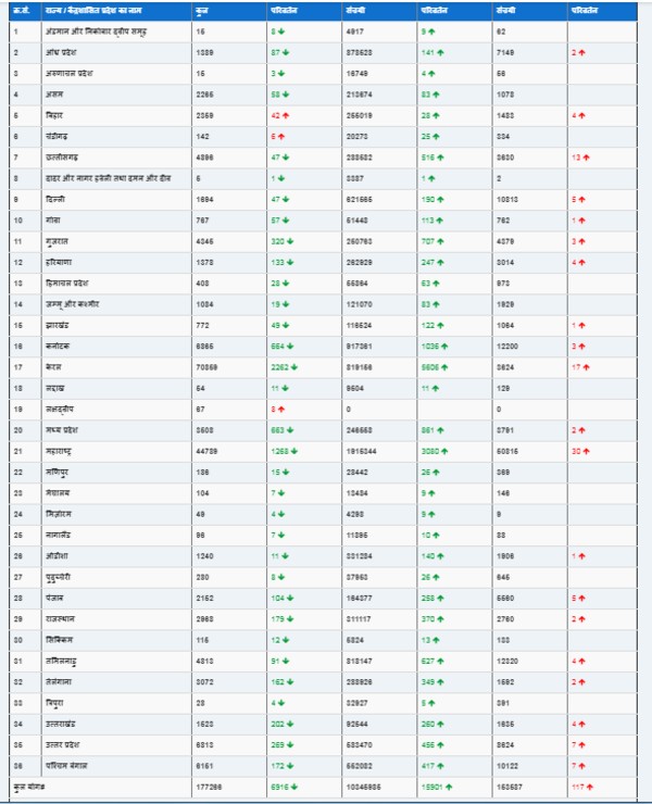 बीते 24 घंटे में राज्यों में कोरना की ताजा स्थिति जानने के लिए नीचे की तालिका देखें :