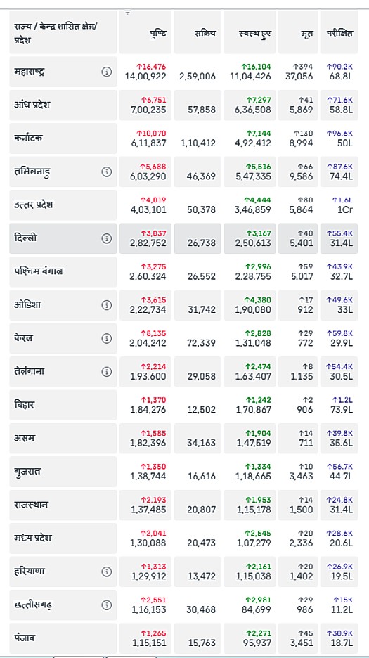 देश के अब अट्ठारह राज्य ऐसे हो गए हैं जहां पर कोरोना संक्रमण के मामले एक लाख से ऊपर पहुंच गए हैं। इनमें सबसे अधिक संक्रमण के मामले में बीते 24 घंटों में महाराष्ट्र (Maharashtra) से आये हैं। वहां 16476 संक्रमण के नए मामले सामने आए।