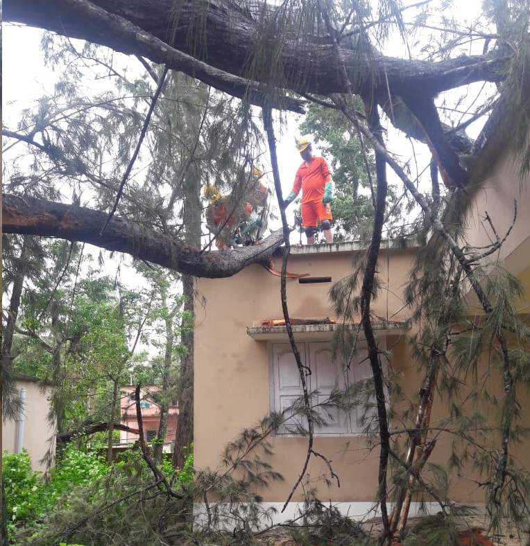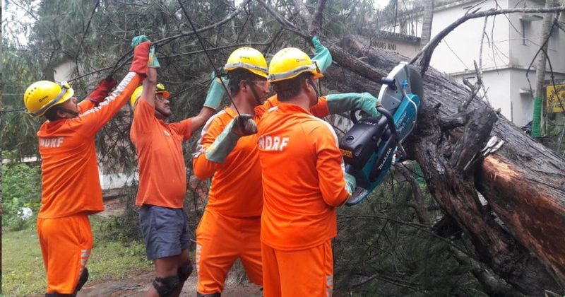 भीषण चक्रवाती तूफान फोनी के कारण ओड़िशा के बालासोर में 3 मई,2019 को सवेरे हजारों पेड़ जमीन से उखड़ गए। एनडीआरएफ के जवान राहत कार्य करते हुए।