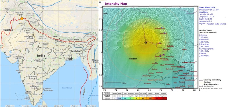 भारत-पाक सीमा (India Pak border) के पास भूकंप (Earthquake) का केंद्र पाकिस्तान के न्यू मीरपुर के एक किमी दक्षिण पूर्व में था।