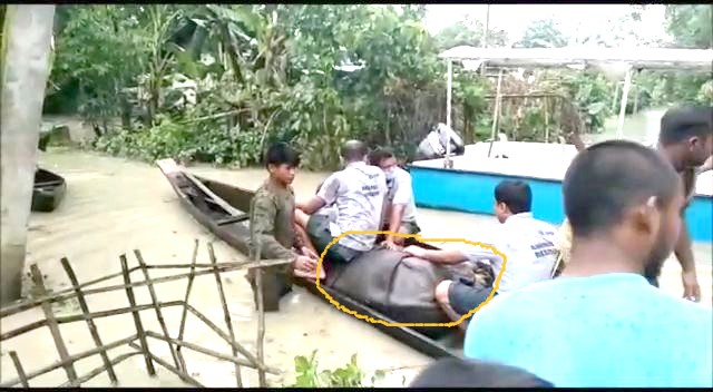 काजीरंगा राष्ट्रीय उद्यान (Kaziranga National Park) में एक गैंडे का बच्चा (Rhinoceros) बाढ़ के कारण अपनी मां से बिछड़ गया। जिसे काजीरंगा वन मंडल की टीम ने नाव के जरिए सुरक्षित बहर निकाला है।