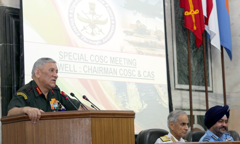 सीओएससी के निवर्तमान अध्यक्ष एयर चीफ मार्शल बीरेंद्र सिंह धनोआ ने तीनों सेनाओं से संबंधित सभी मामलों पर अग्रणी भूमिका निभाई।
