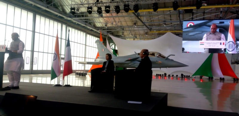 रक्षामंत्री राजनाथ सिंह ने 8 अक्टूबर, 2019 को फ्रांस के मेरीनेक में दसॉल्ट एविऐशन की उत्पादन इकाई में एक समारोह में रफाल (Rafale) ग्रहण किया।