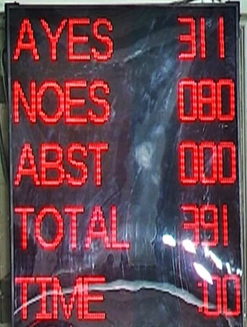 नागरिकता संशोधन विधेयक, 2019 ( Citizenship Amendment Bill, 2019) के पक्ष में 311 सदस्यों ने मतदान किया जबकि 80 सदस्यों ने विधेयक के विरोध में मतदान किया।