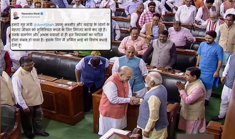 प्रधानमंत्री नरेन्द्र मोदी ने जम्मू कश्मीर पुनर्गठन विधेयक के संसद में पारित होने को महत्वपूर्ण बताया और कहा-राज्य में एक नयी सुबह का इंतजार।