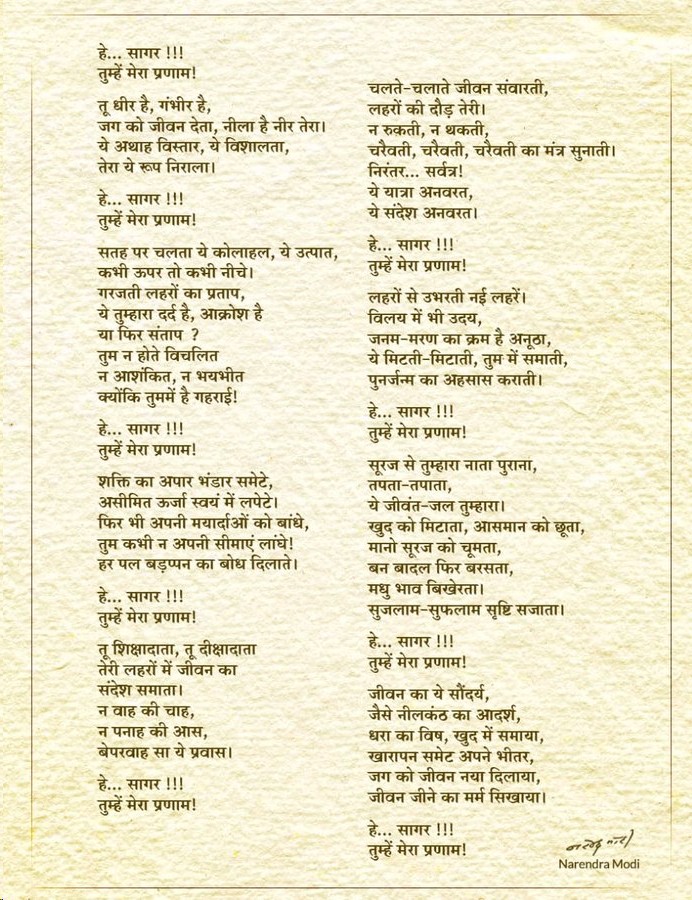 मोदी ने अपने भाव हे सागर (Hay Sagar) शीर्षक से लिखी कविता (Poem) में व्यक्त किये हैं।