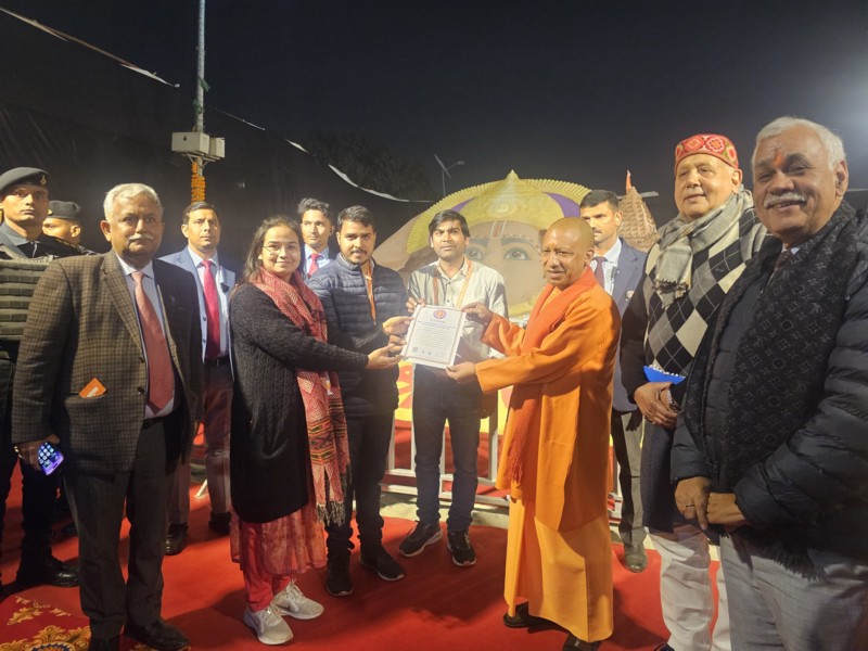 रेत शिल्प पर बनाई गई इस आकृति को वर्ल्ड रिकॉर्ड्स बुक ऑफ इंडिया की तरफ से भगवान श्रीराम के सबसे बड़े रेत शिल्प का सर्टिफिकेट दिया गया है। सीएम