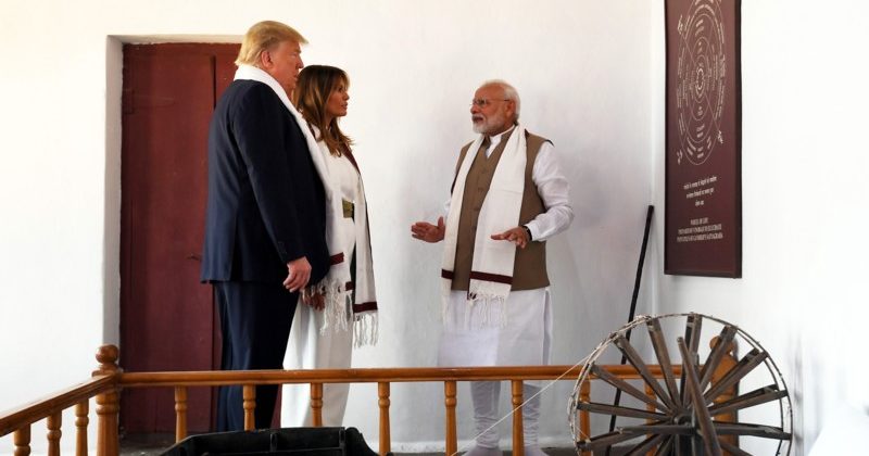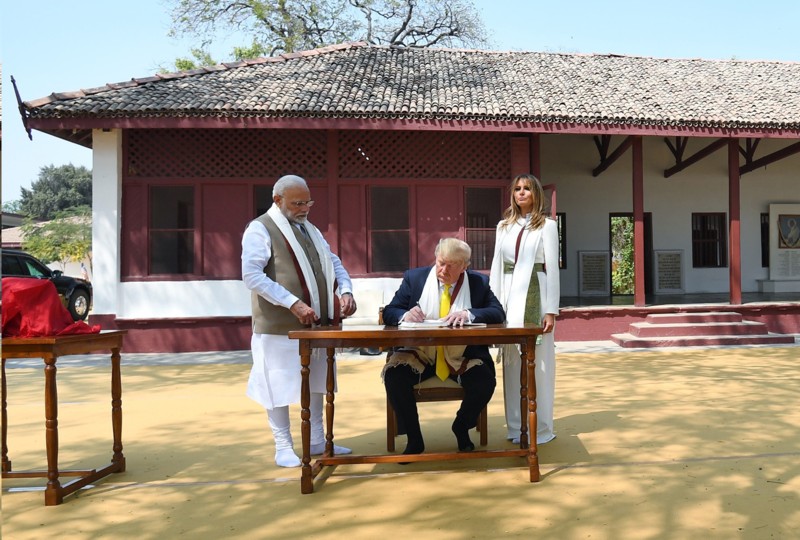 The Prime Minister, Shri Narendra Modi and the President of United States of America (USA), Mr. Donald Trump and First Lady Mrs. Melania Trump at Sabarmati Ashram, in Ahmedabad, Gujarat on February 24, 2020.