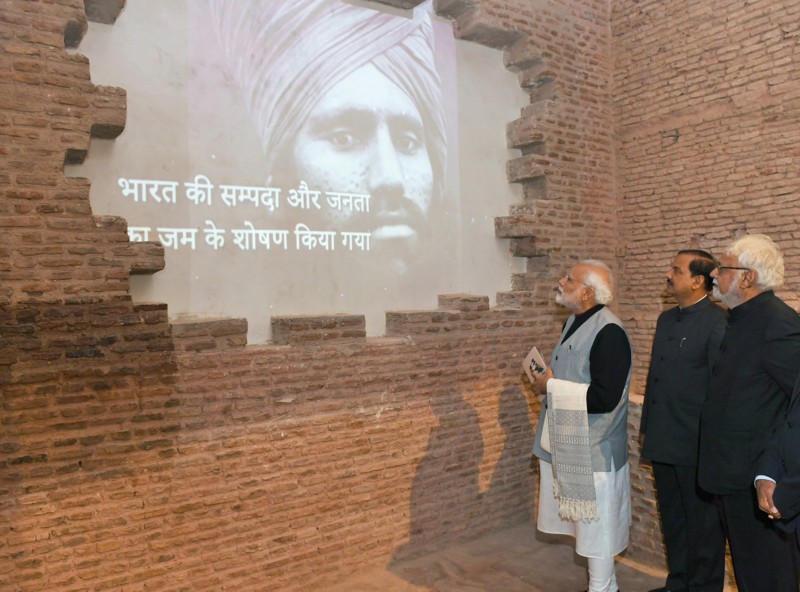 The Prime Minister, Shri Narendra Modi visiting the Yaad-e-Jallian Museum, at Red Fort, Delhi on January 23, 2019.