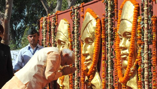 फाइल फोटो – प्रधान मंत्री नरेन्द्र मोदी ने 23 मार्च 2015 को पंजाब में हुसैनीवाला में राष्ट्रीय शहीद स्मारक पर शहीद भगत सिंह, राजगुरू और सुखदेव को श्रद्धांजलि अर्पित करते हुए।
