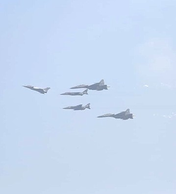 The Chief of Defence Staff (CDS), General Bipin Rawat, the Chief of the Air Staff, Air Chief Marshal R.K.S. Bhadauria and the Defence Secretary, Dr. Ajay Kumar are also seen.