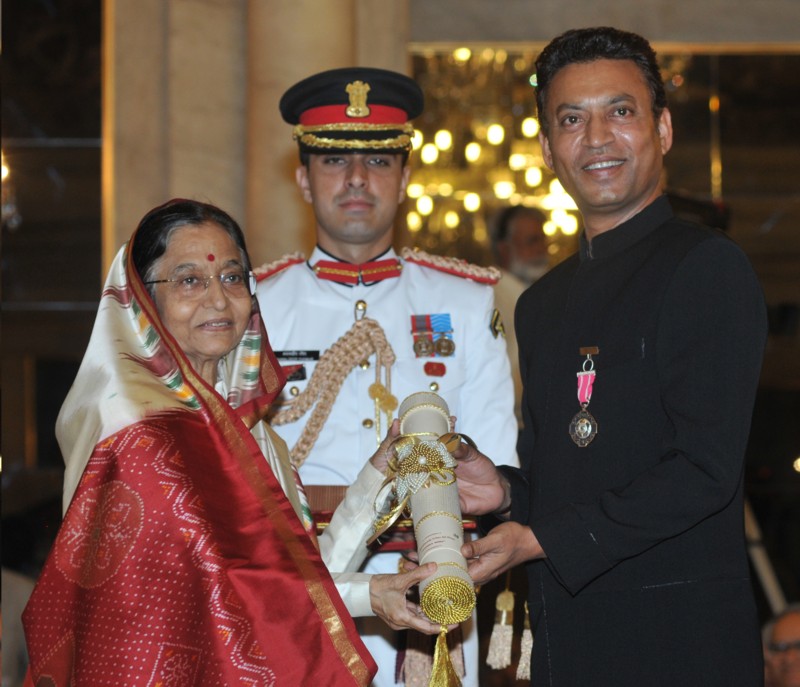 राष्ट्रपति श्रीमती प्रतिभा देवीसिंह पाटिल से राष्ट्रपति भवन में 1 अप्रैल, 2011 को पद्म श्री अलंकरण प्राप्त करते हुए इरफान खान।