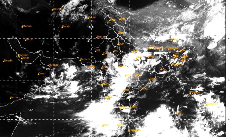 भारत पर मानसून का नजारा : भारतीय मौसम विभाग द्वारा उपग्रह से 22 जून,2020 की शाम 06ः56 बजे लिया गया चित्र