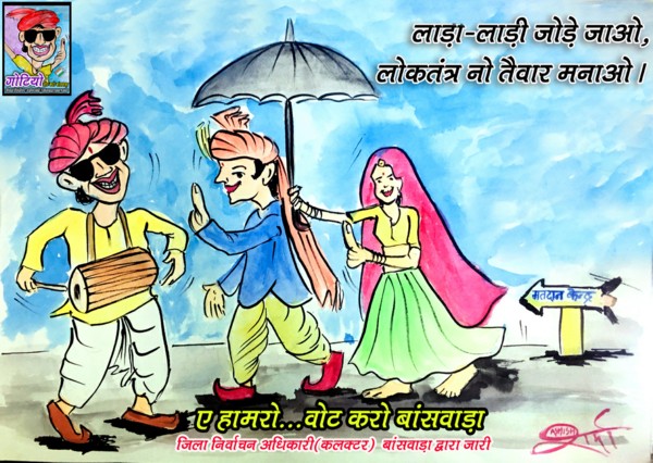 वागड़ी बोली में प्रारंभ की गई ‘ए हामरो’ श्रृंखला में मतदाताओं को दिए जा रहे संदेशों को और अधिक प्रभावी बनाने के लिए बनाया गया यह कार्टून करेक्टर अब दूर-दराज के ग्रामीण क्षेत्रों तक भी पहुंच गया है।