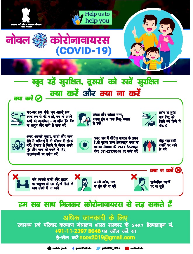 केन्द्र सरकार और विश्व स्वास्थ्य संगठन ने जो भी सलाह दी है उसकी पालना हर व्यक्ति को करनी चाहिए।